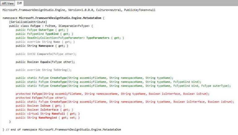 Framework Design Studio가 설치된 디렉토리에 fxdiff.exe라는 command line 명령을 통해서 API Diff같이 Assebly들의 그룹들을 비교하실 수도 있습니다.