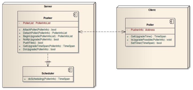 Polling 방식의 장점은 항상 클라이언트가  서버의 상태를 주기적으로 체크하고 최신 버젼이 나오면 다운로드 받기 때문에,  클라이언트를 특별히 관리하지 않아도 되는 장점이 있습니다.  말 그대로 네트웍에 바인딩만 된다면 항상 최신 버젼을 다운로드 받아가겠죠. 단점은 서버에서 새로운 버젼을 배포했을 경우, 한 순간에 너무나 많은 클라이언트가 동시에 다운로드를 요청할 수 있기 때문에, 서버의 부하가 한순간 올라간다는 단점이 있죠.