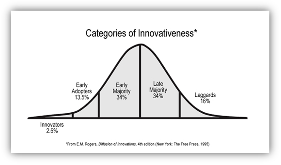 • Laggards – 전통적인 사람들, 옛방식을 고수하는 것을 좋아하고, 새로운 아이디어에 비판적이며, 새로운 아이디어가 주류가 되거나 심지어 전통이 되어야 수용.