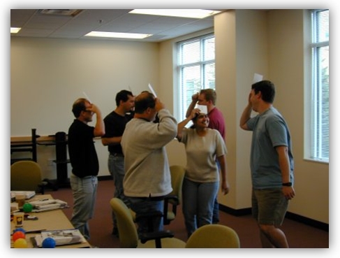 3. 그럼 팀원들이 모여 Pattern Combination을 만듭니다. 예를 들면 Factory와 Singleton 또는 Factory Method와 Template Method를 뽑은 사람을 같이 세워 서로 간에 연관성을 파악할 수있게 일종의 체인을 만듭니다. 중이 제 머리를 못 깍는다는 거아시죠. 줄이나 사람을 세울 때, 다른 사람의 자신의 위치를 지정해 줘야 합니다. 물론 자신이 정확히 패턴을 알고 있다면, 그렇게 행동하겠지만 사실 쉬운 일이 아닙니다.