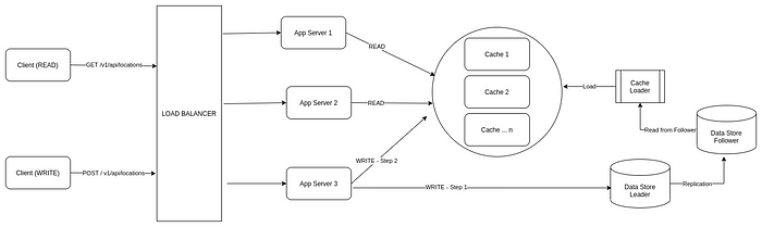 몇 분마다 실행되고 마지막 ID 또는 타임스탬프 이후 위치를 로드하는 예약된 작업을 수행할 수 있습니다. 이것은 실시간 프로세스가 아니므로 (POST 타입의) location API가 호출될 때 쓰기 경로도 위치 정보를 작성/업데이트하도록 할 수 있습니다. 다음 아키텍처에서 쓰기 경로에는 2단계가 있습니다. (아래 그림 2, 그림 3을 참고하세요)