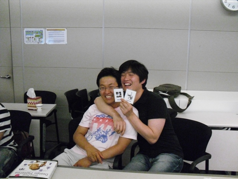 일전에 포스팅했던 PLoP의 Rippling Game (잔물결 치며 이름외우기) 진행했습니다. 파도치기를 하면서 서로를 소개하는 방법입니다. 다들 서로의 이름을 짧은 시간에 외우누라 고생이 많았지만 얻어가는게 많습니다. 실제 저희 EVA 스터디 식구들은 2주마다 이렇게 자기를 소개하고 있습니다. 그래서 서로를 좀더 쉽게 이해해 나가죠. 작은 것 하나 사는 얘기들을 나누면서 좀더 친밀감을 높일 수 있습니다. 이것이 곧 소통의 열쇠가 됩니다.